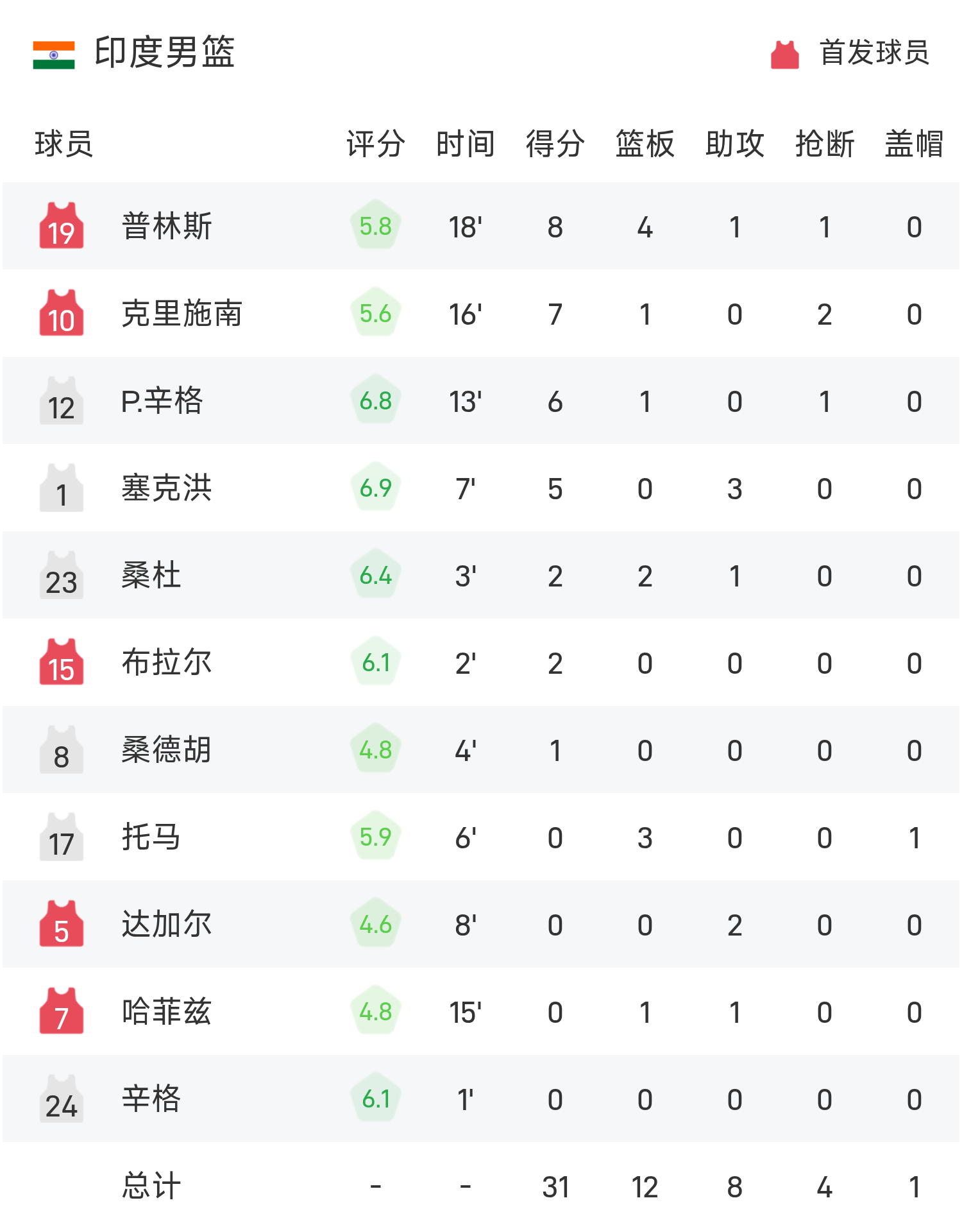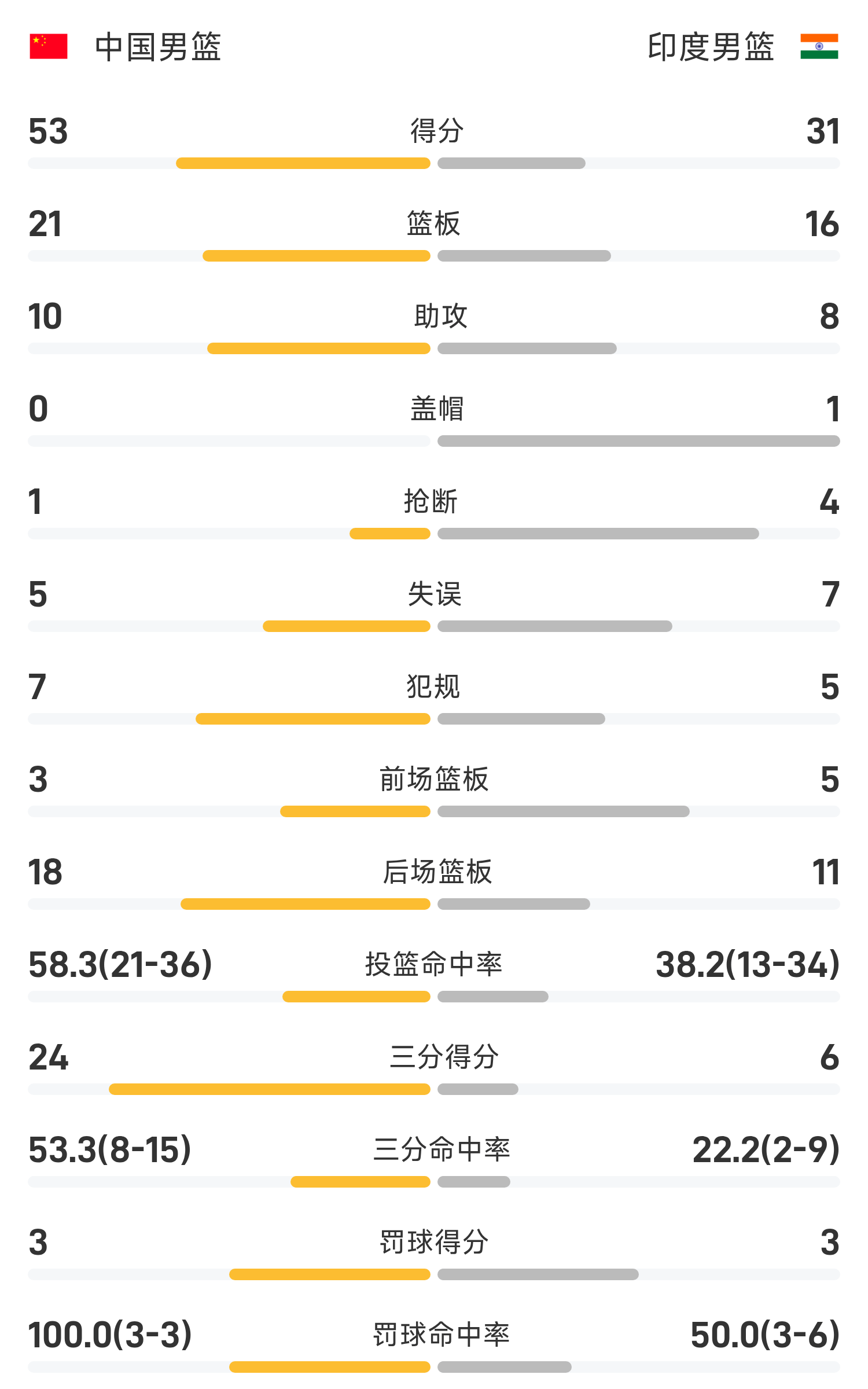 男篮亚洲杯半场:胡明轩命中4记三分,胡金秋11分6板,中国男篮53-31印度男篮